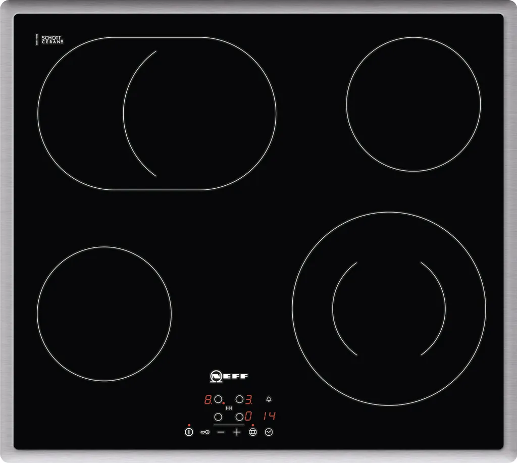 Neff N 50 T18B42N2 – Cerankochfeld – 4 Kochfelder – Nische – Breite: 56 cm – Tiefe: 49 cm – schwarz – mit Rändern aus Edelstahl