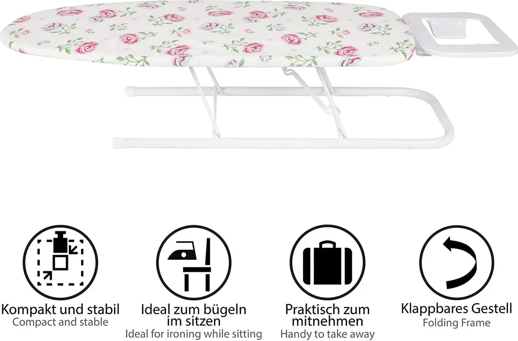 ONVAYA Tischbügelbrett | Mini Bügelbrett | Bügeltisch | Kleines, Platzsparendes Bügelbrett | Rosen Design