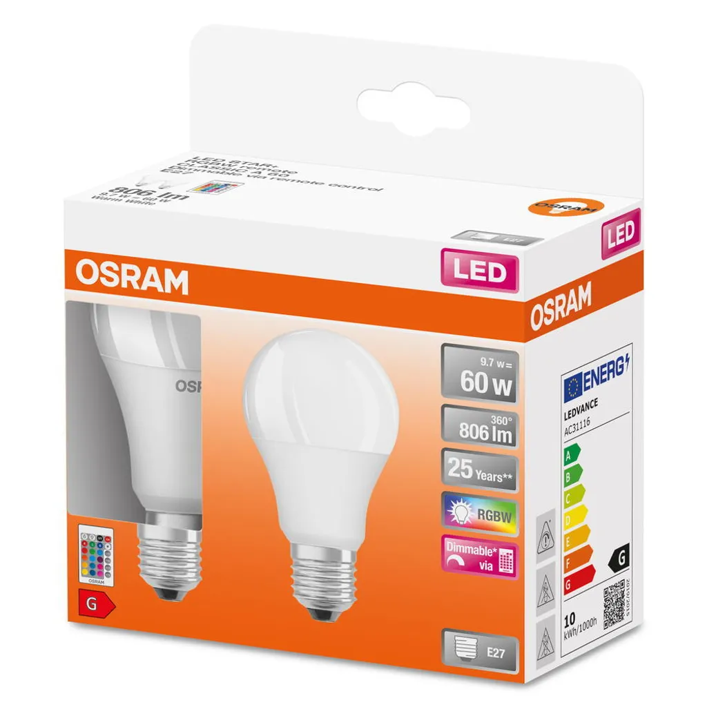 OSRAM LED STAR+ CLA RGBWFR 60 DIM via rem. con 9W/827 E27 806LM 2er BOX 4058075430891 / 4058075430891 – .