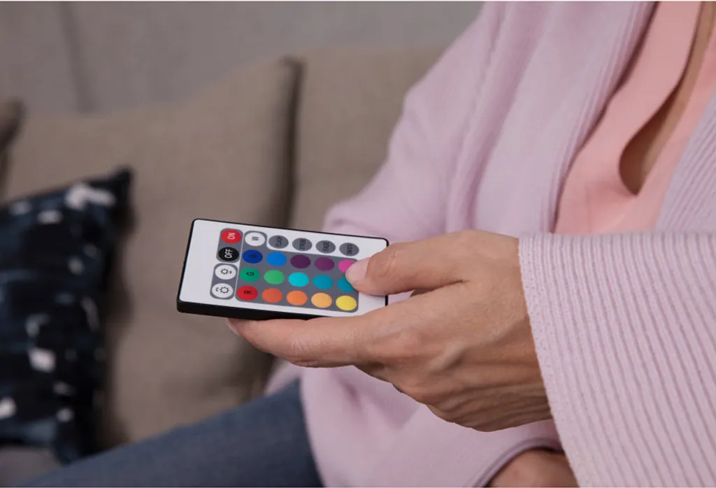 Consumer RGBW LED-Lampen mit Fernbedienung. Produkteigenschaften: Lebensdauer: bis zu 25.000 h. Ermöglicht die Steuerung von Farben, Sättigung und Abstufungsstufen. Große Auswahl an steuerbaren Farben, einschließlich Weiß. Vier dynamische Effekte: Flash, Strobe, Smooth, Mode. Dimmen per Fernbedienung. Produktvorteile: Einfache Installation. Reduzierung des Energieverbrauchs um bis zu 80% im Vergleich zu normalen Lampen. Individuelle Kontrolle. Zur Steuerung der Lampe ist keine App oder kein Smartphone erforderlich. Komfortable und intuitive Infrarot-Fernbedienung. Schalten, 4-Stufen-Dimmen und Farbsteuerung auf Knopfdruck. Dynamischer Farbwechsel. Anwendungsbereiche: Inländische Anwendungen.
