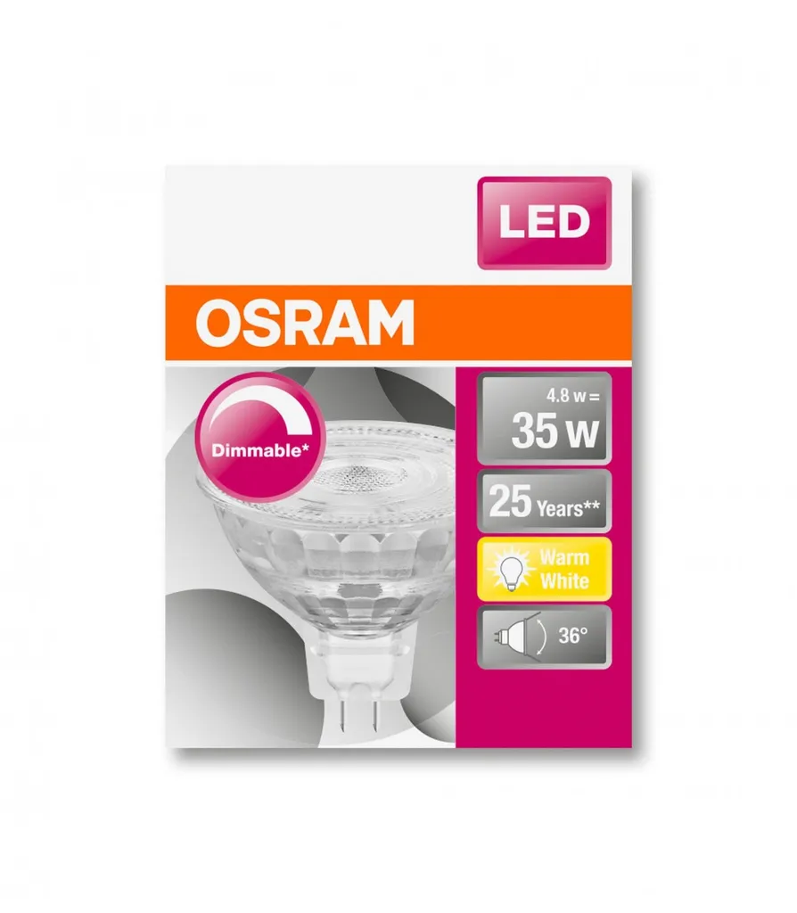 OSRAM Spot MR16 LED 36 ° variables Glas – 4,9 W Äquivalent 35 W GU5.3 – Warmweiß