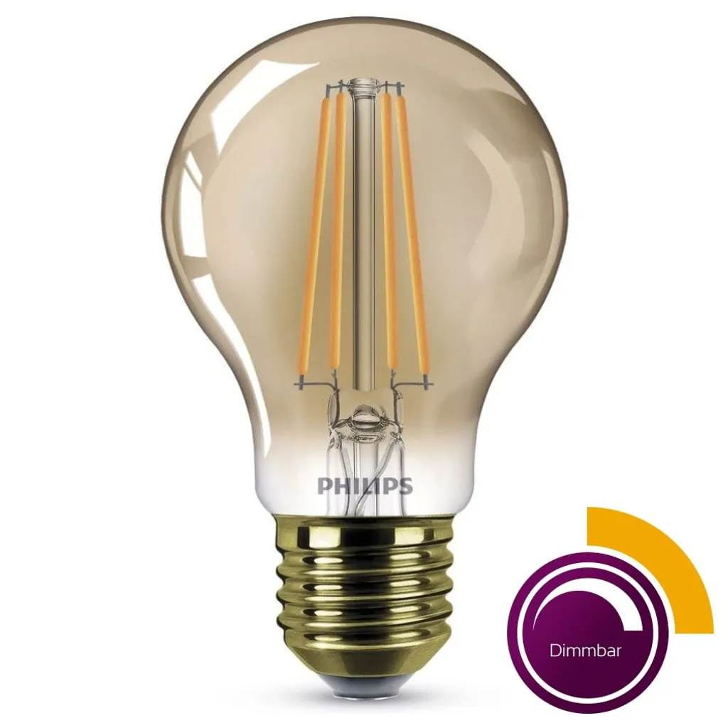 Philips LED Filament Leuchtmittel Birnenform A60 8W = 50W E27 Gold 630lm extra warmweiß 2200K DIMMBAR