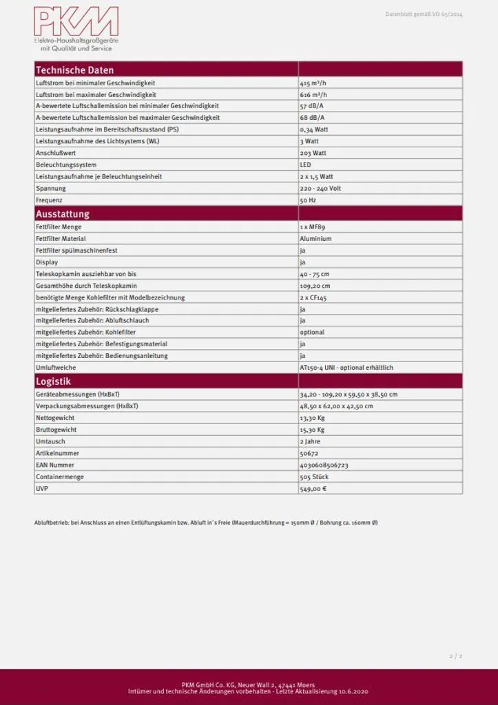 Die Dunstabzugshaube hat einen leicht zu reinigenden, spülmaschinenfesten Fettfilter. Dank der praktischen LED-Beleuchtung haben Sie Ihre Töpfe und Pfannen immer im Blick. Mithilfe der intuitiv verständlichen Touch-Control-Felder lassen sich sowohl die Absauggeschwindigkeit als auch das Licht individuell einstellen. Die Dunstabzugshaube von PKM verfügt außerdem über einen ausziehbaren Teleskopkamin, der ein Tiefer- und Höherstelllen der Abluft ermöglicht.