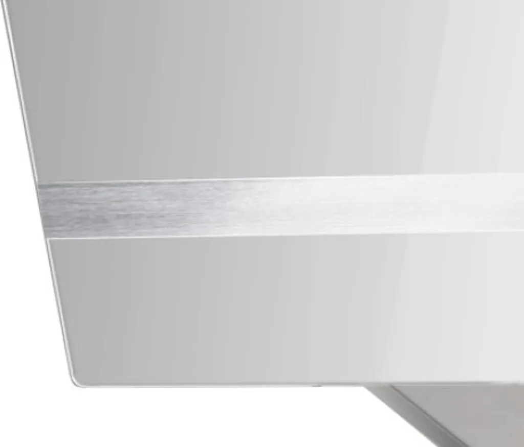 Schicke weiße Dunstabzugshaube, ausgestattet mit Aluminium-Fettfilter, welcher sich sehr bequem in der Spülmaschine reinigen lässt. Mittels Touch Control Panel schalten Sie Licht ein und kontrollieren die Absauggeschwindigkeit. Durch gedrückt halten der An/Aus-Taste ist eine 5-Minuten-Zeitverzögerung möglich. Die Montage erfolgt an der Wand, je nach baulichen Gegebenheiten als Umluft- oder Abluftbetrieb.