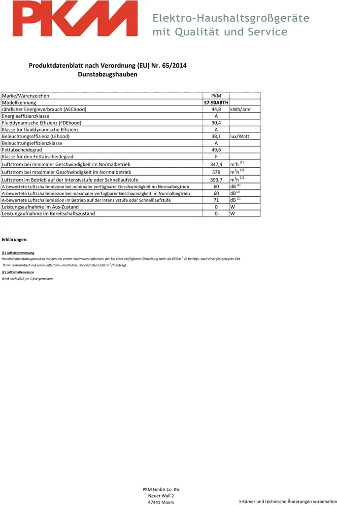 jährlicher Energieverbrauch (AEChood): 50,6 kWh/Jahr