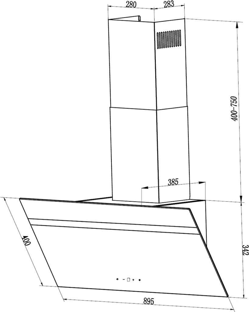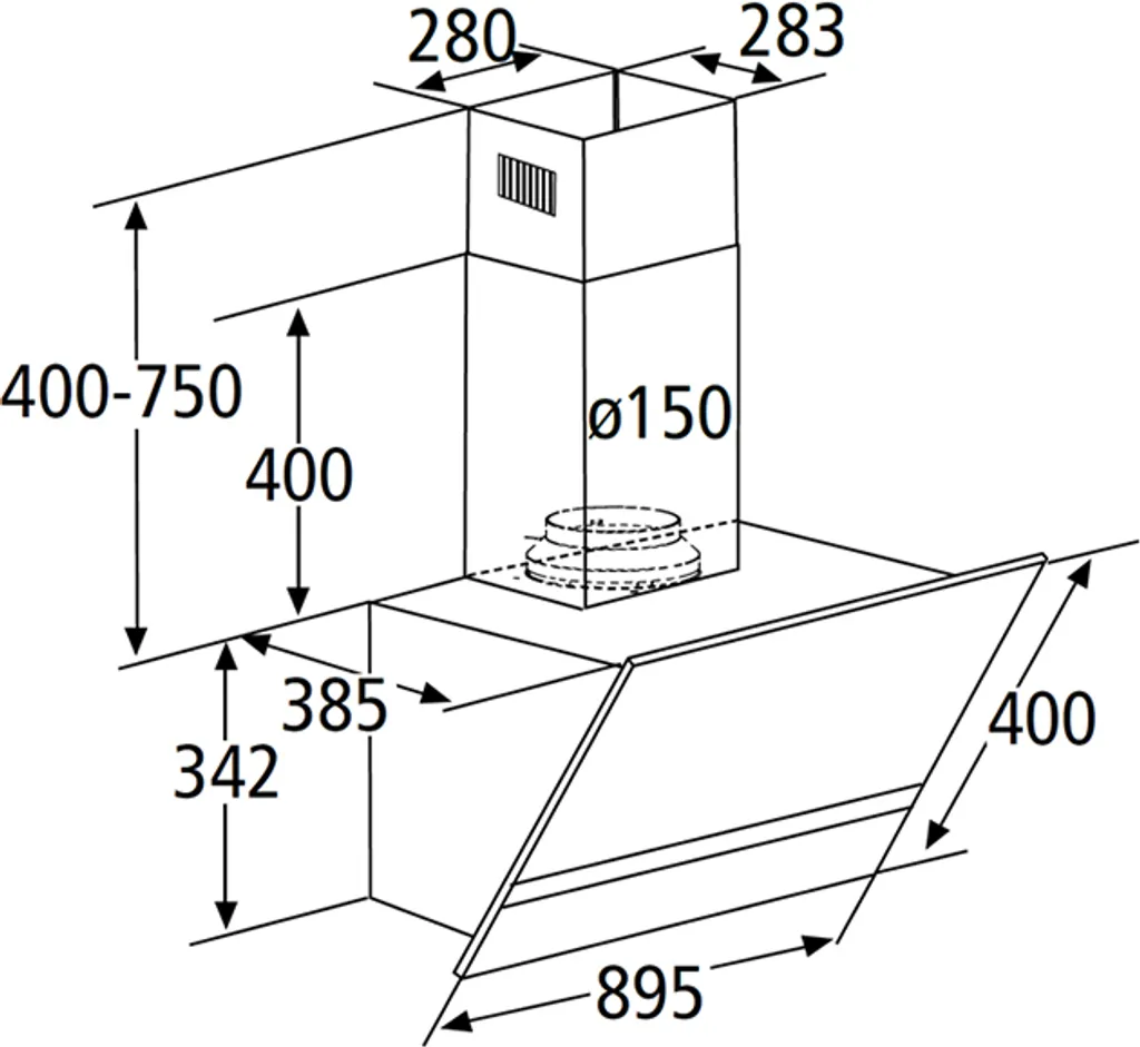 Dunstabzugshaube PKM S20-90ABTY schwarz mit Randabsaugung / 60cm Kopffreihaube / Schräghaube / LED / Glas / Edelstahl