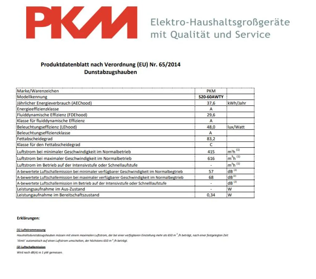 - jährlicher Energieverbrauch (AEChood): 37,6 kWh/Jahr