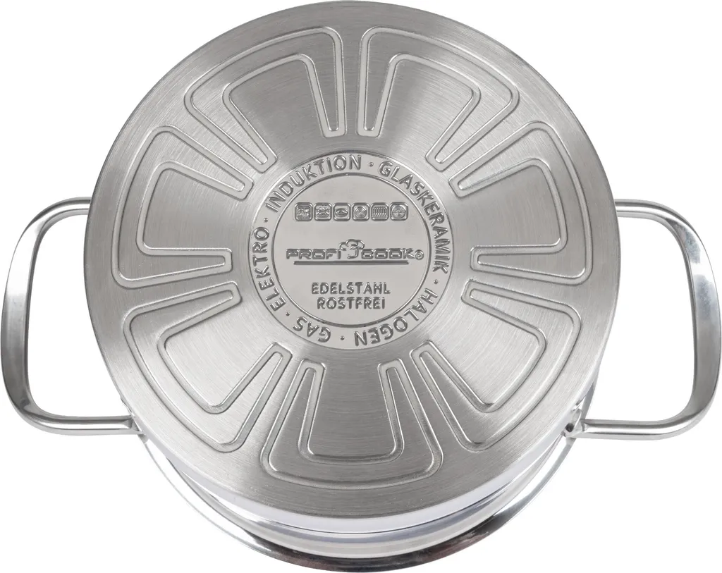 Der Allrounder für Ihre Küche: das ProfiCook Kochtopfset PC KTS 1225 aus Edelstahl ist geeignet für alle Herdarten, funktioniert also auf Induktion-, Gas,- Keramik, Halogen- und Elektroherd.