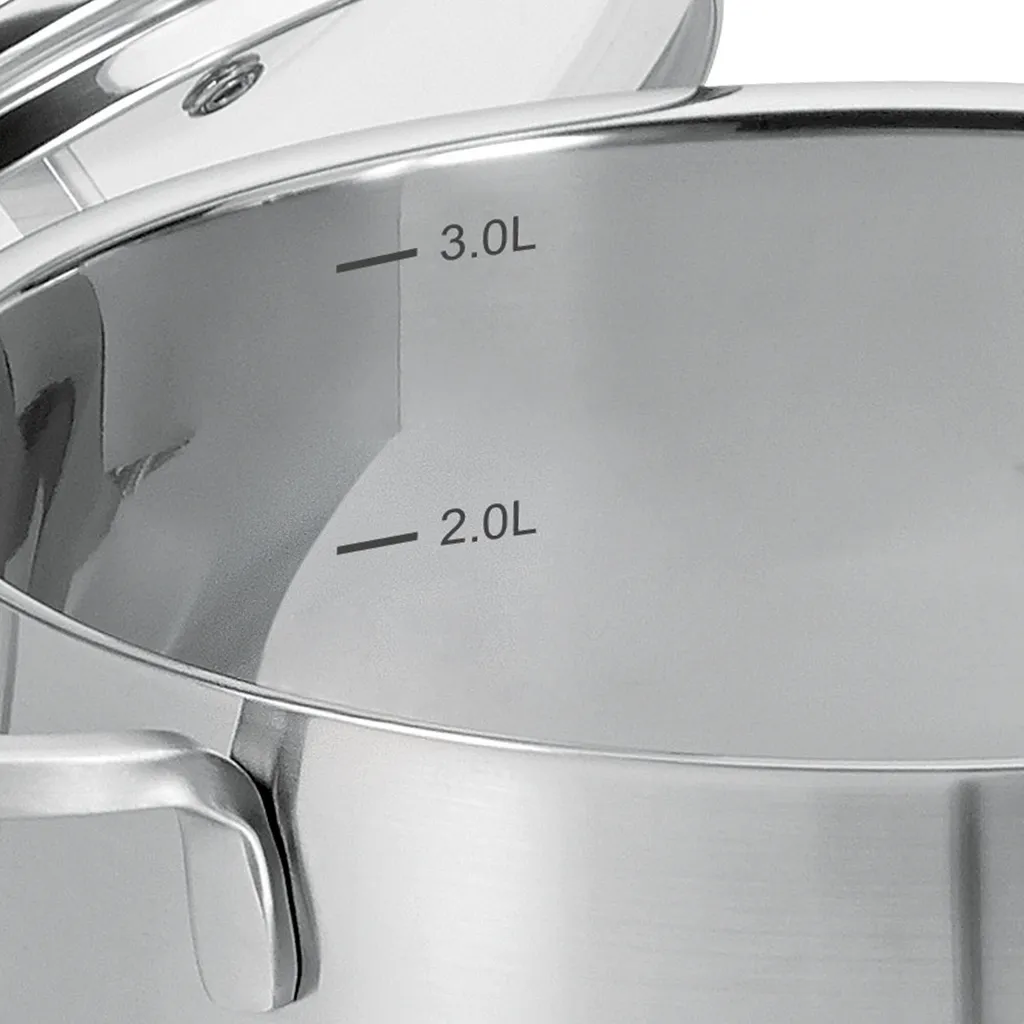 - Stielkasserolle, 2x Fleischtöpfe m. Glasdeckel (16 & 20cm), 1x Bratentopf, 1x Gemüsetopf m. Glasdeckel