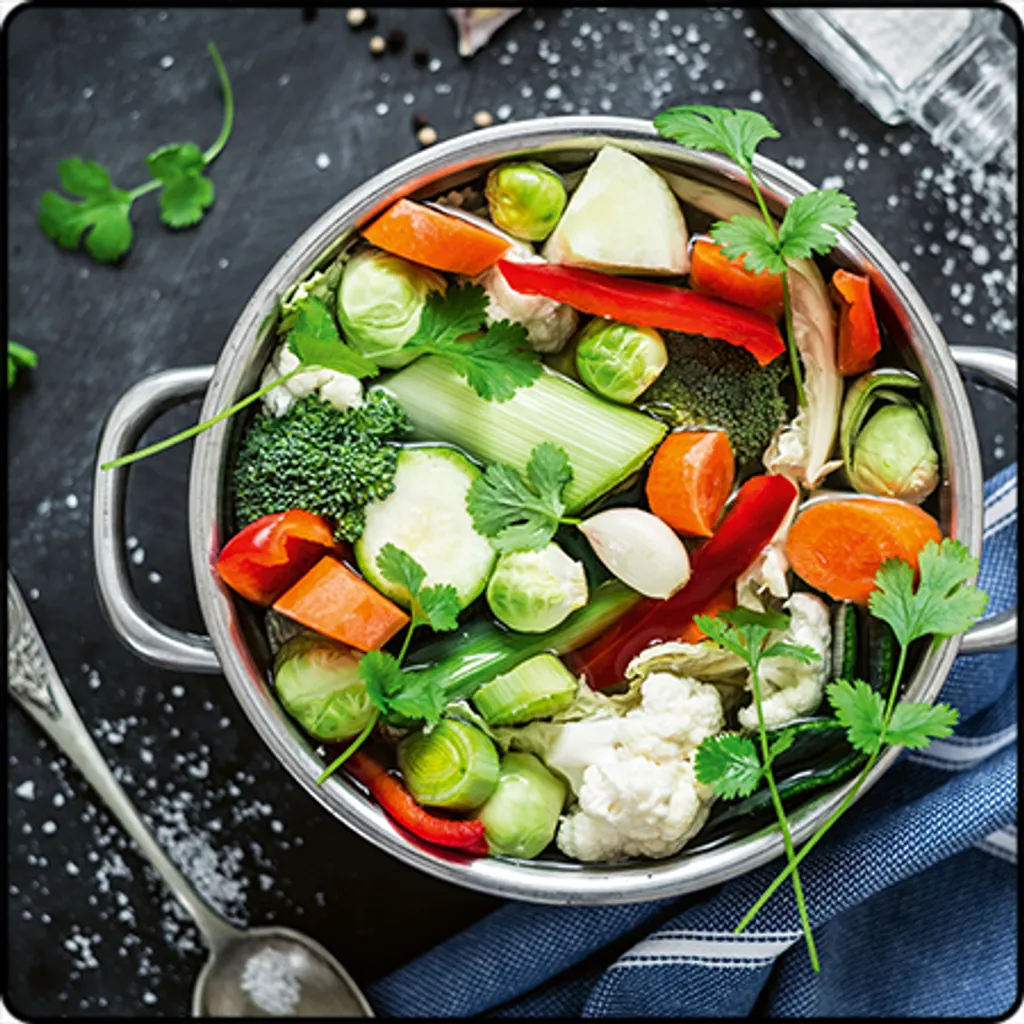 Energiesparend Kochen: gleichmäßige, schnelle Wärmeverteilung und optimale Wärme-Speicherung dank verkapseltem Sandwichboden.