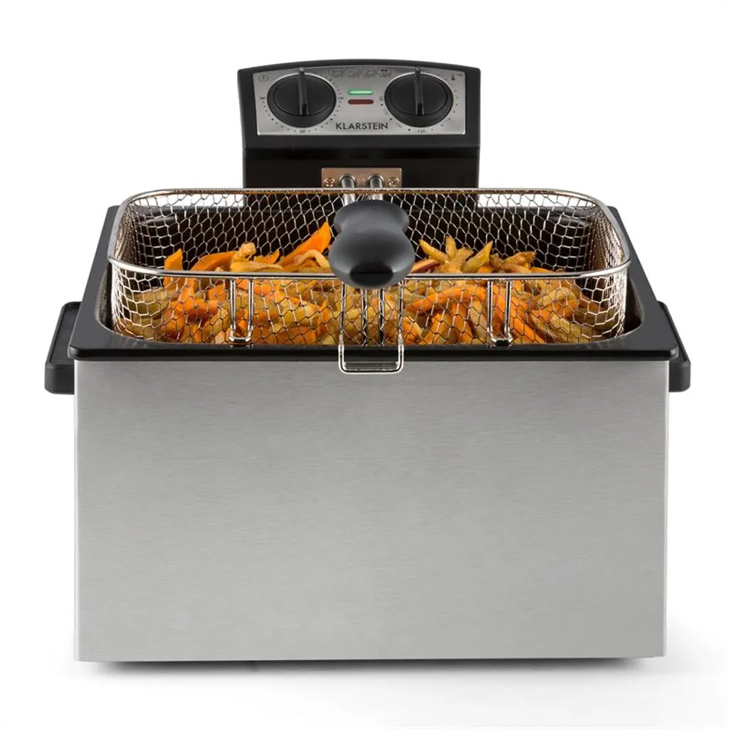 komfortable und große Fritteuse für den Haus- oder semiprofessionellen Gebrauch, besonders geeignet für große Familien, WGs, Catering oder Bars, stufenlos regelbare 3000W Leistung für Temperaturen bis 190°C, Frittierwanne mit 5 Liter Volumen für bis zu 1,5kg Frittiergut, komplett zerlegbar für einfache Reinigung