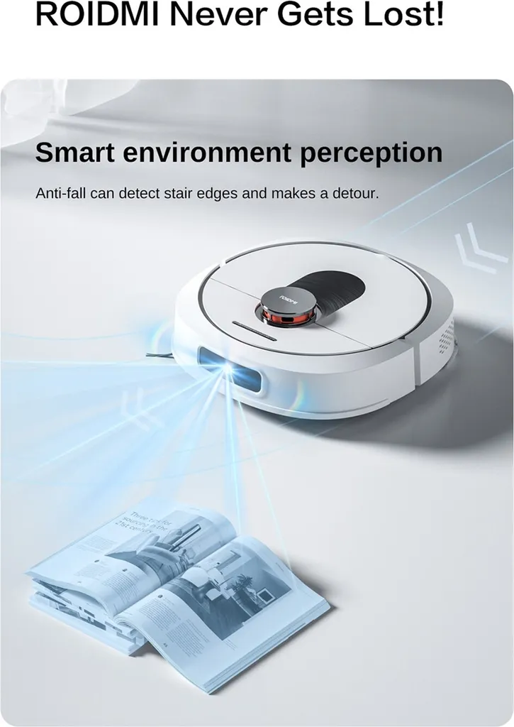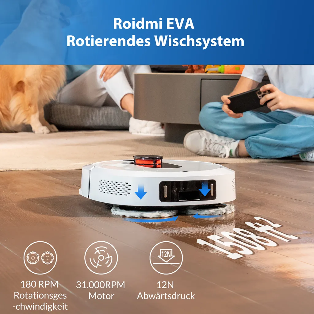 ROIDMI Eva Saugroboter mit Wischfunktion | Staubsaugen, Kehren, Wischen, Waschen und Trocknen| 4L Wassertanks, 3200Pa Saugleistung, 180Minuten Laufzeit, 3D-Hinderniserkennung, App-/Sprachsteuerung