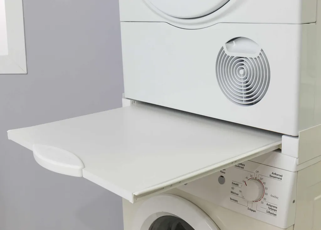 - mit ausziehbarer Arbeitsplatte (Ablage) – zum bequemen Befüllen und Entleeren des Trockners oder Zusammenlegen von Wäsche