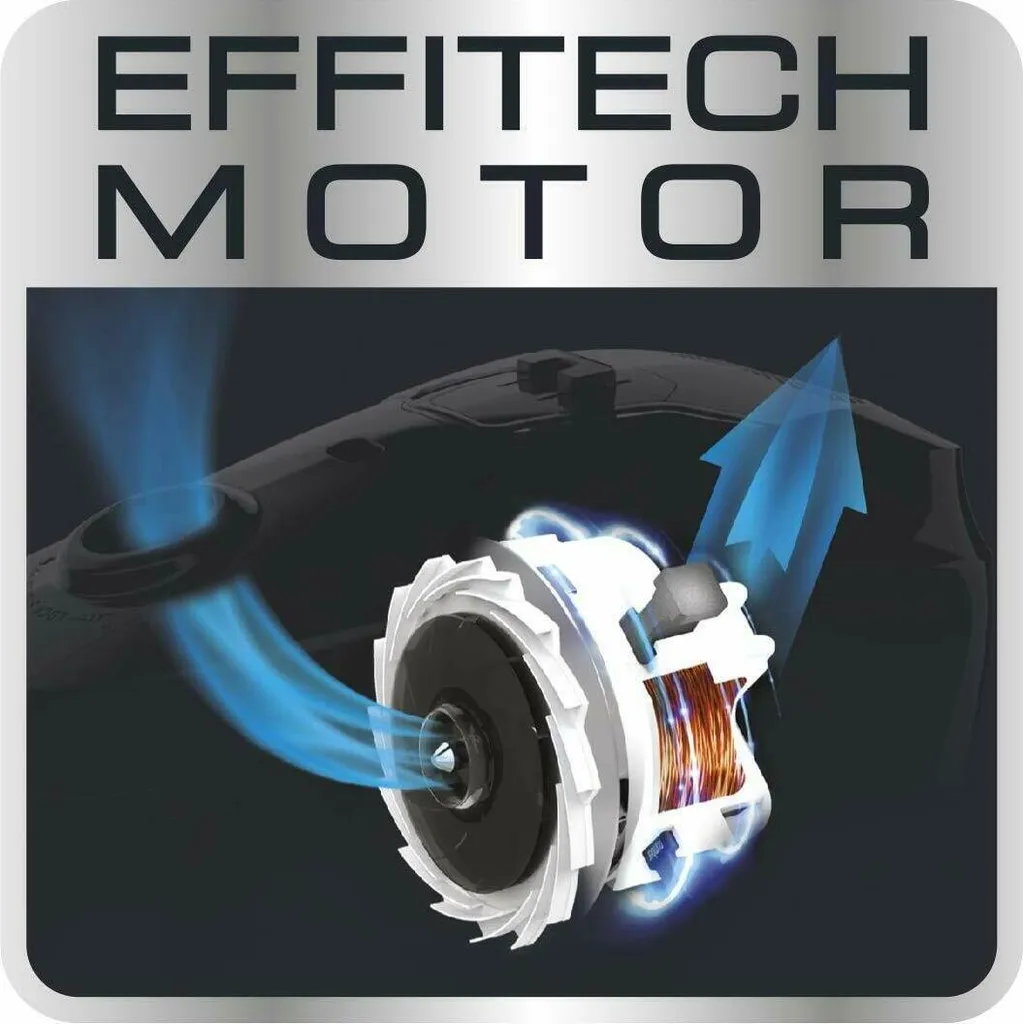 - – Energiesparmotor 750 Watt, mit der Leistung eines 2000 Watt Motors. Verglichen mit Rowenta Staubsaugern der Vorgängergeneration(2000 Watt)