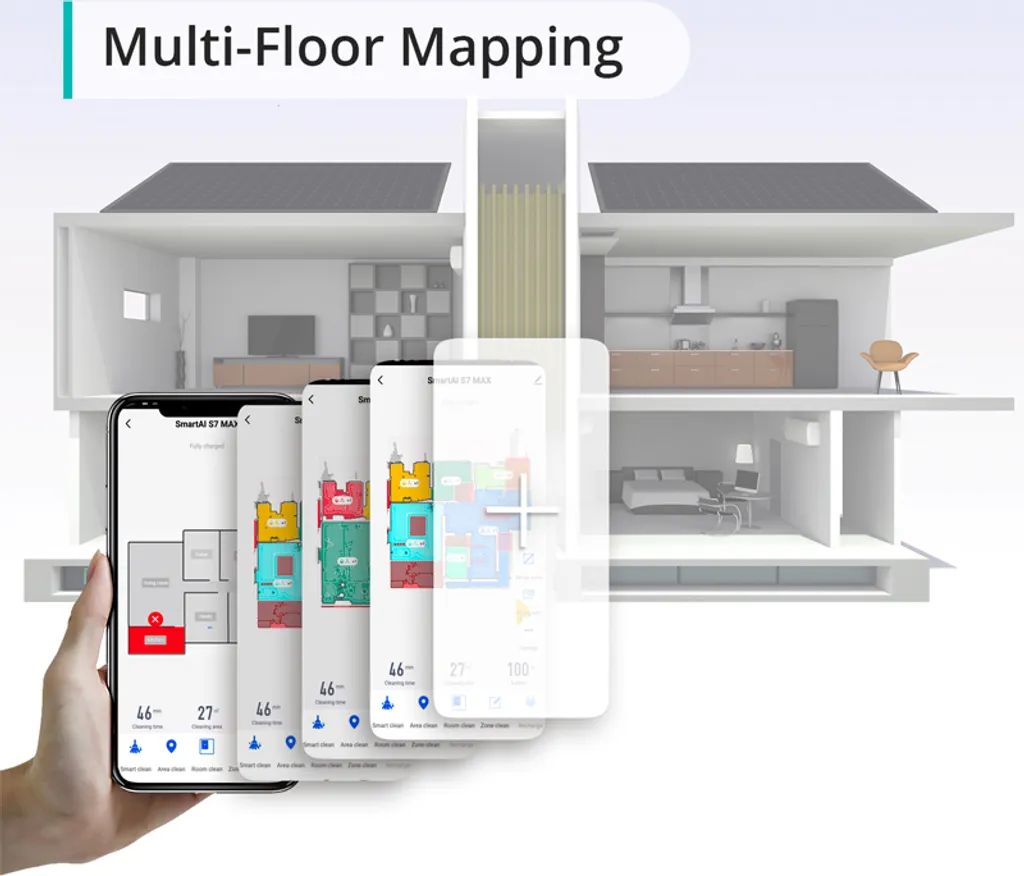 Erzeugt und speichert mehrere Karten. Der S7 MAX ist bereit für eine schnelle und effiziente Reinigung, auch wenn er an einen anderen Ort oder in eine andere Etage gebracht wird.