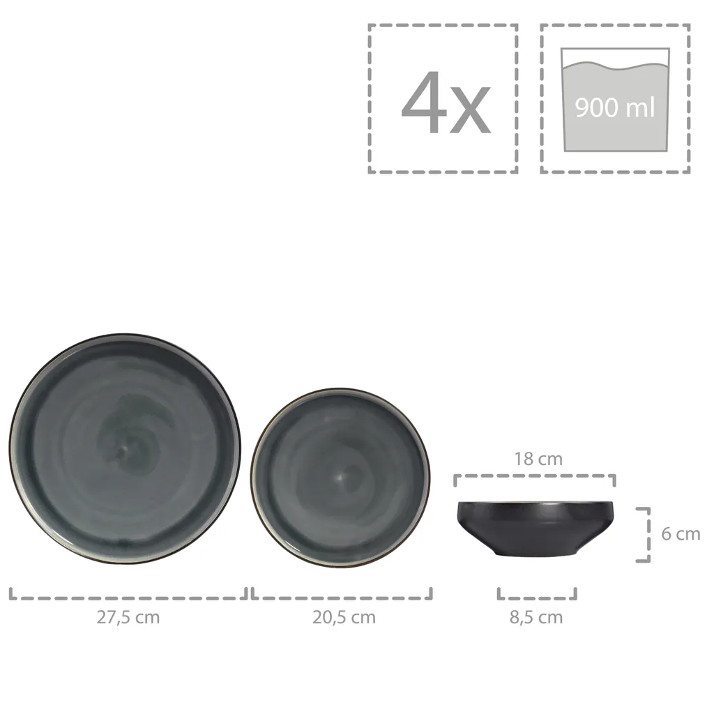 4x Schale – ØxH: 18×6 cm – Füllmenge: 900ml – Gewicht: 500g