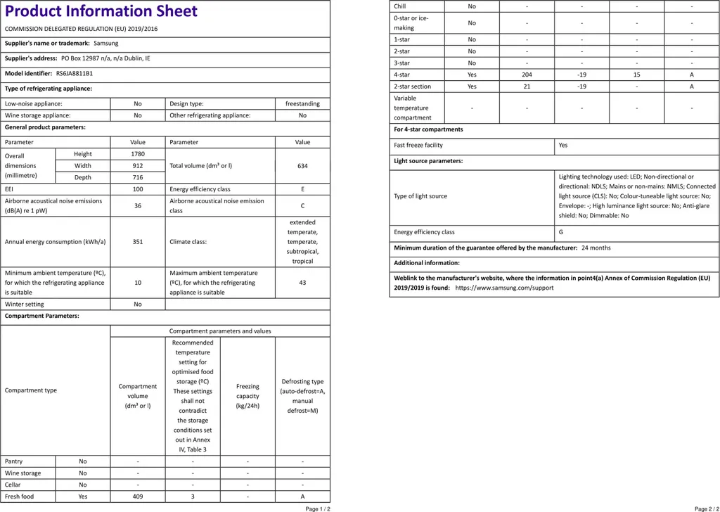 - Jahresenergieverbrauch in kWh: 351 kWh
