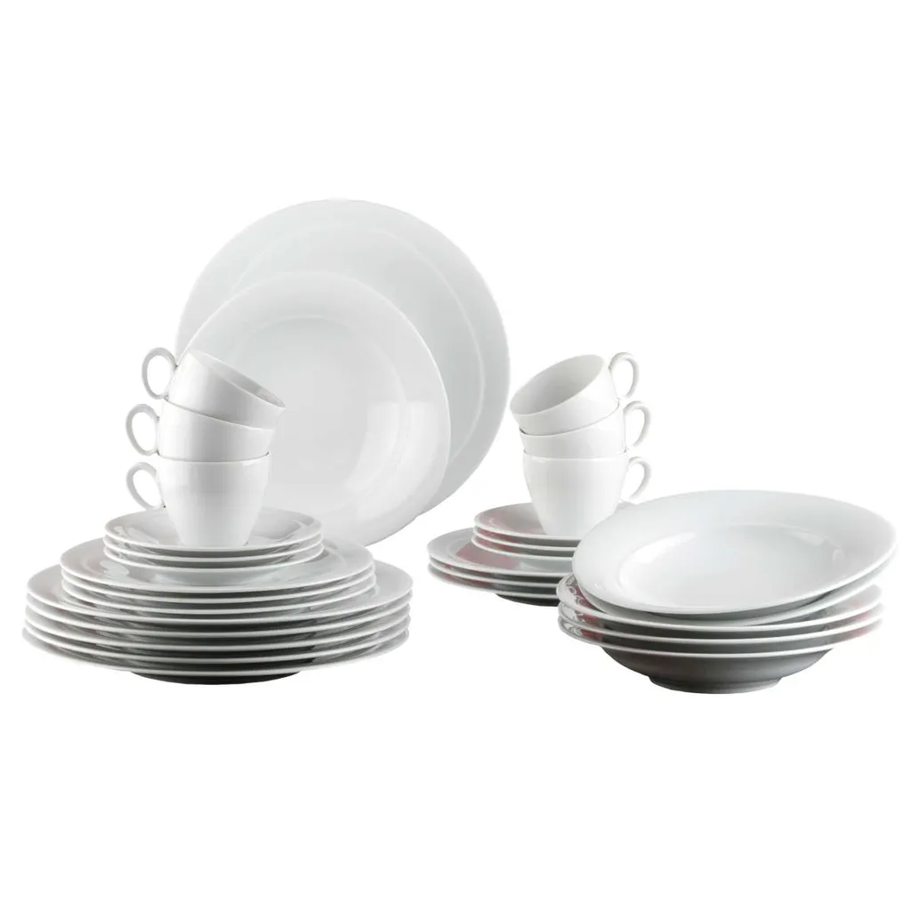 30-teiliges Kombiservice: 6 Speiseteller, 6 Suppenteller, 6 Dessertteller, 6 Untertassen und 6 Kaffeetassen