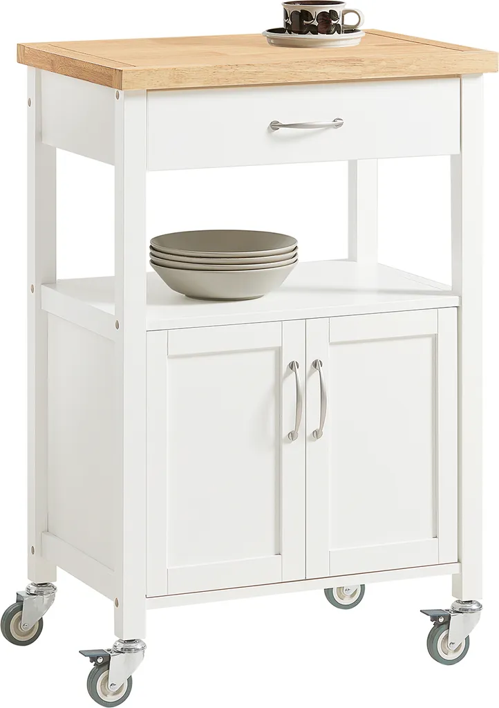 Moderner Küchentrolley mit zwei Türen und einer praktischen Schublade für Geschirr, Servietten uvm.