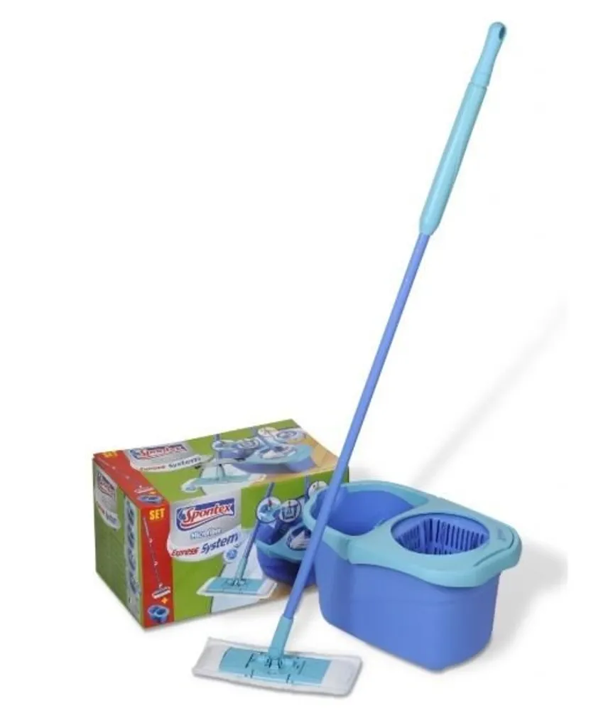 Reinigungs-Set bestehend aus Bodenwischer und Eimer mit Rotationssystem Effizientes Schleuder-System für optimales Auswringen im gewünschten Trocknungsgrad Jetzt ohne Wringkorb: für eine einfachere Reinigung und bessere Hygiene Sehr leichte Bedienung durch einzigartigen Klappmechanismus des Bodenwischer Eimer mit Säuberungsrillen für gründliches Auswaschen des Bezugs Das Spontex Express System+ besteht aus einem Bodenwischer mit Mikrofaserbezug und einem Eimer mit integriertem Schleuder-System. Das Komplett-Set ist ideal für die schnelle und bequeme Feuchtreinigung aller Böden geeignet. So einfach ist die Handhabung des Bodenwischers: Reinigen des Bezugs: Beim Einführen in den Eimer klappt der Wischer automatisch in die U-Form Durch Auf-und-Ab-Bewegung wird der Bezug zusätzlich mechanisch an den Säuberungsrillen im Eimer gereinigt Einfaches Übersetzen in das Rotationssystem Auswringen: Der Wischer wird auf die Rotationshalterung gesteckt (kein Wringkorb) Effizientes Trockenschleudern des Bezugs durch leichte Handbewegung am Stiel Der Trocknungsgrad kann durch die Dauer des Schleudervorgangs variiert werden Wischen: Bodenwischer aus dem Eimer entnehmen und auf den Boden aufsetzen Durch Änderung des Neigungswinkels des Stiels klappt der Wischer leicht und schnell in die Wischposition und die Bodenreinigung kann fortgesetzt werden Das Rotationssystem ohne Wringkorb kann nach der Benutzung sehr einfach gereinigt werden. Alle Ecken im Eimer sind sehr leicht zugänglich. Der Mikrofaserbezug des Express System besteht aus tausenden, feinen Fasern und bindet Schmutz und Wasser porentief durch erhöhten Oberflächenkontakt. Dadurch reinigt das Spontex Express System+ gründlich und entfernt Schmutzpartikel besser als herkömmliche Wischer – sogar ohne Einsatz von Reinigungsmitteln. Der Bezug ist bei 40°C in der Maschine waschbar. Durch das Henkel-Blockier-System des Eimers wird das Schlenkern beim Tragen vermieden und Säuberungsrillen im Eimer ermöglichen ein leichtes Entfernen von Schmutz. Passend zum Spontex Express System+ ist der Spontex Express System+ Ersatzbezug separat erhältlich. Der Ersatzbezug des Vorgängermodells Express System ist nicht für das Express System+ geeignet. Anwendungshinweis : Nicht mit Weichspüler oder Bleichmittel waschen! Maße: 30,0×50,0x29,5 cm