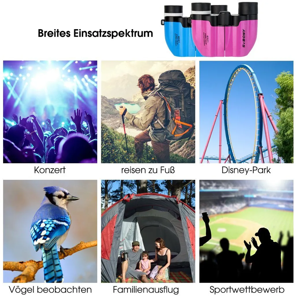 Das SV26-Fernglas für Kinder ist für Kinder konzipiert. Kinderferngläser eignen sich perfekt für Vogelbeobachtungen, Camping, Spiele und Theater. Sie können auch zum Beobachten von Wildtieren, Angeln, Wandern und anderen Outdoor-Aktivitäten verwendet werden.