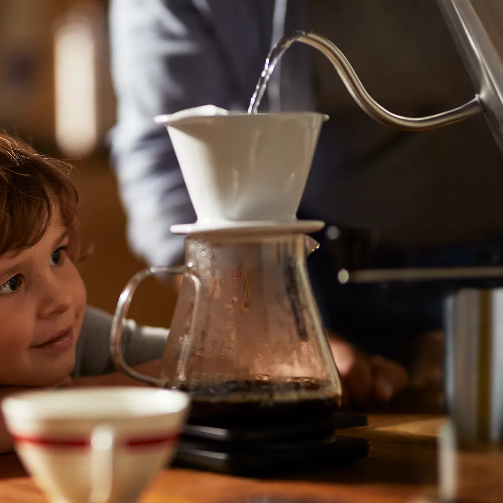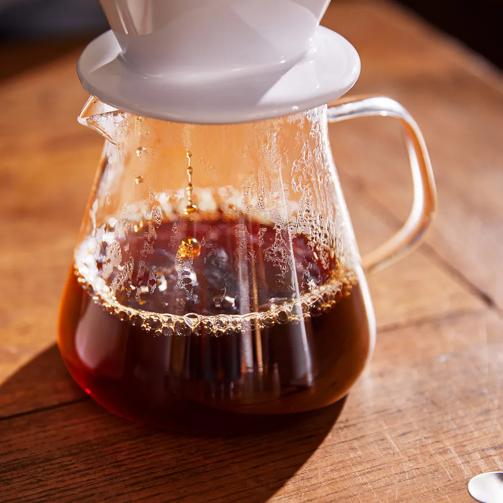 Unterschiedliche Röstungen variieren die Farbe des Kaffees. In der Glaskaraffe erkennen Sie diese besonders gut.