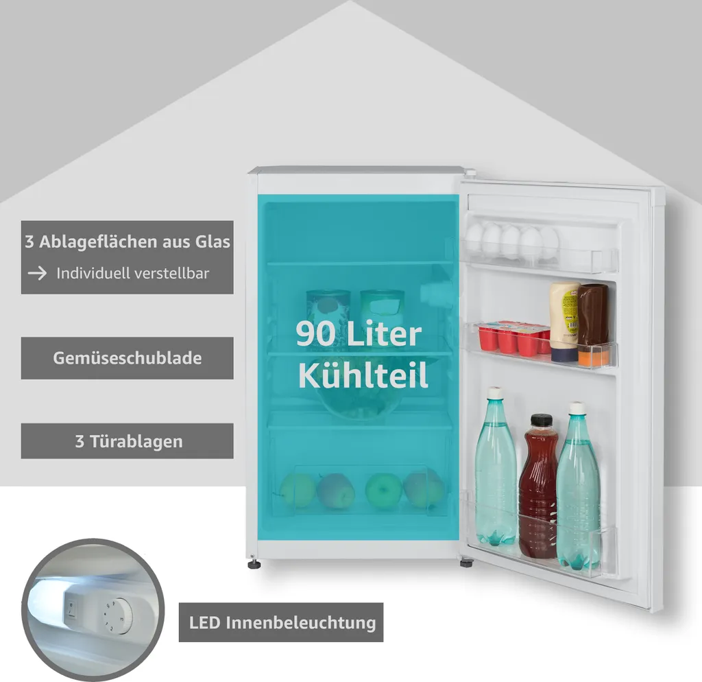 ✔ Freistehender Kühlschrank in weiß mit 90 Liter Netto Nutzinhalt, Innenbeleuchtung, Abtauautomatik und Temperaturregelung