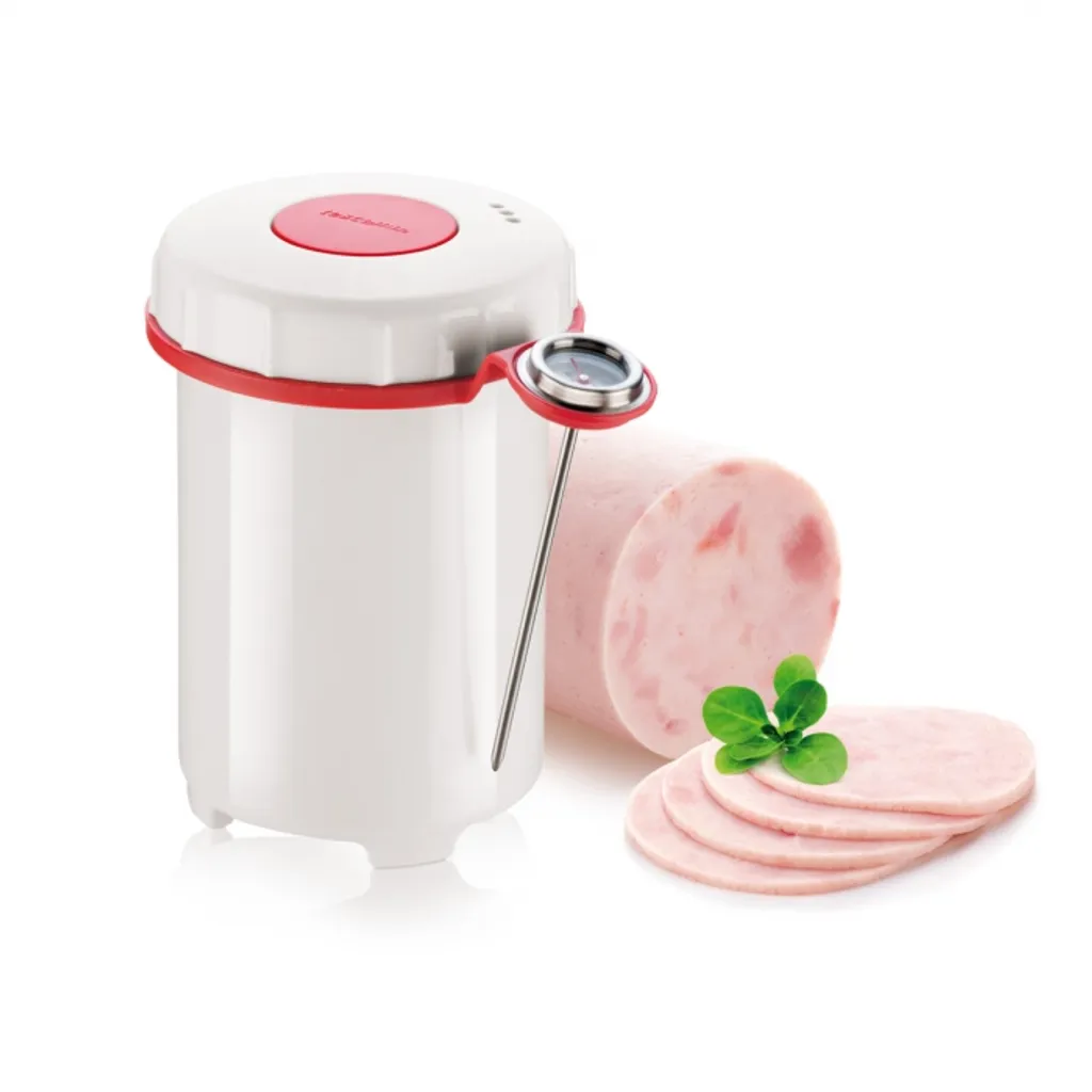 Kochschinkenform PRESTO, mit Thermometer – für die Zubereitung von hausgemachtem Schinken, mit Multi-Thermometer zur genauen Verfolgung der Temperatur beim Garen. Verarbeiten Sie bis zu 1kg Fleisch in nur 48 Stunden zu Schinken.