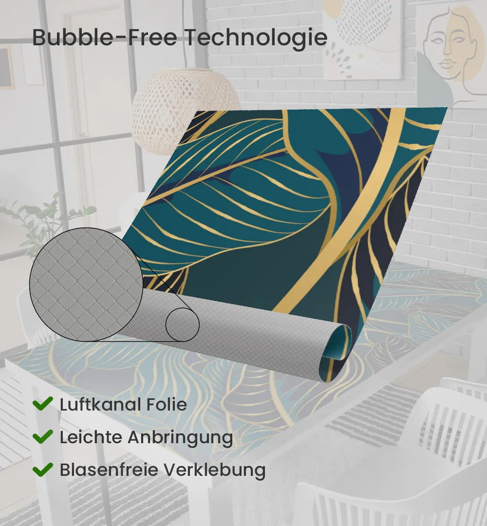 EINFACHE MONTAGE: Unser Möbeltattoo mit UV-Schutzlaminat hat eine Haltbarkeit von bis zu 7 Jahren, Der permanent haftende Kleber ist blickdicht.