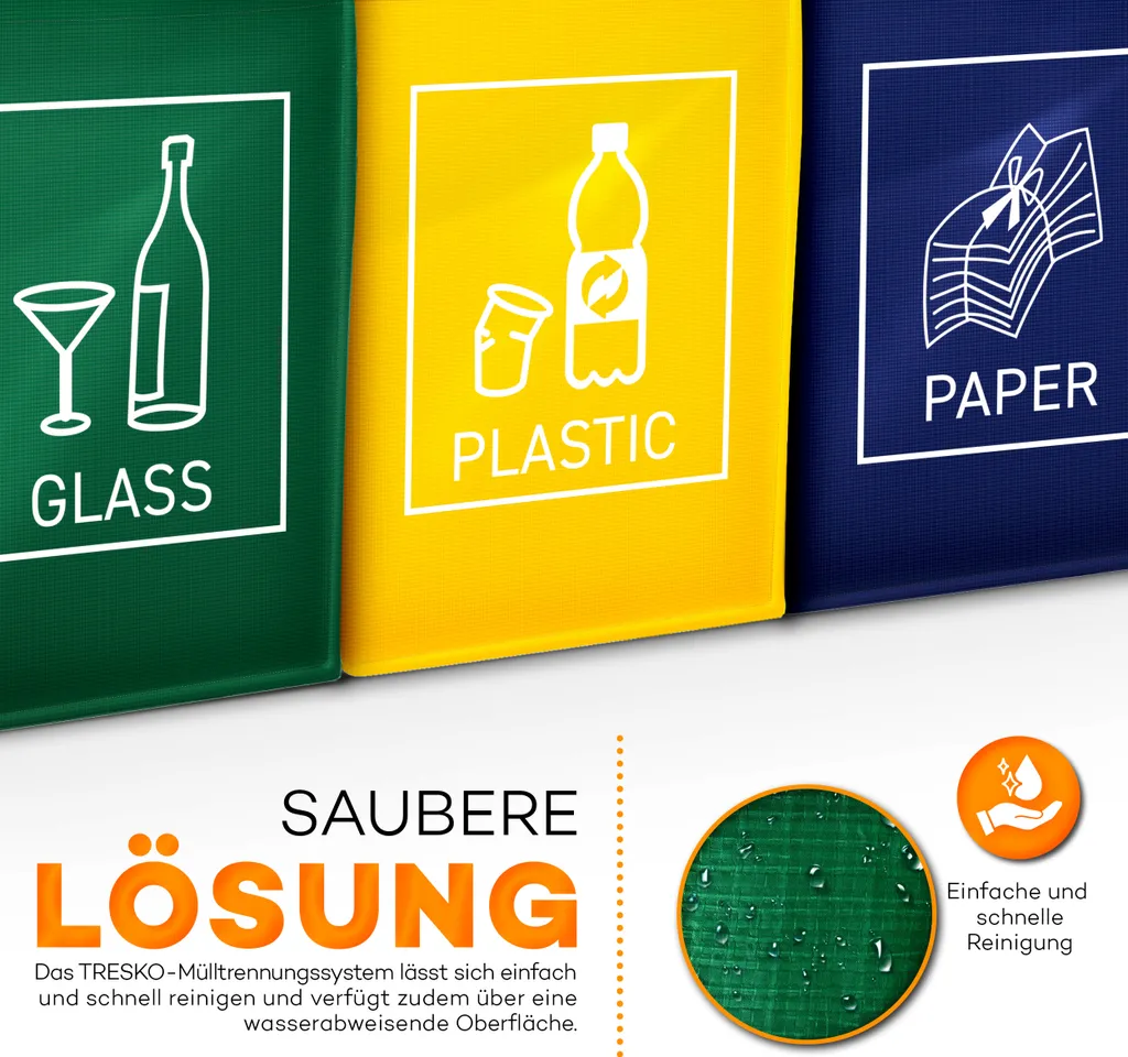 – Material: stark belastbares und beschichtetes Kunstoffgewebe