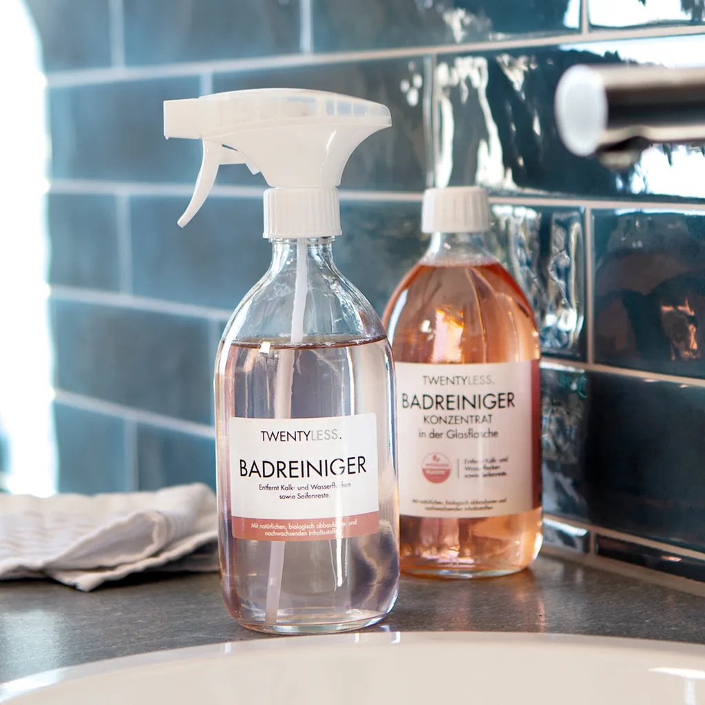 Die clevere Alternative zu herkömmlichen Reinigern basiert auf einem Konzentrat mit natürlichen, biologisch abbaubaren und nachwachsenden Inhaltsstoffen. Gib einfach mit der wiederverwendbaren Dosierkappe die empfohlene Menge TWENTYLESS in die leere Glasflasche, füll diese mit Leitungswasser auf und fertig ist der Sanitärreiniger!