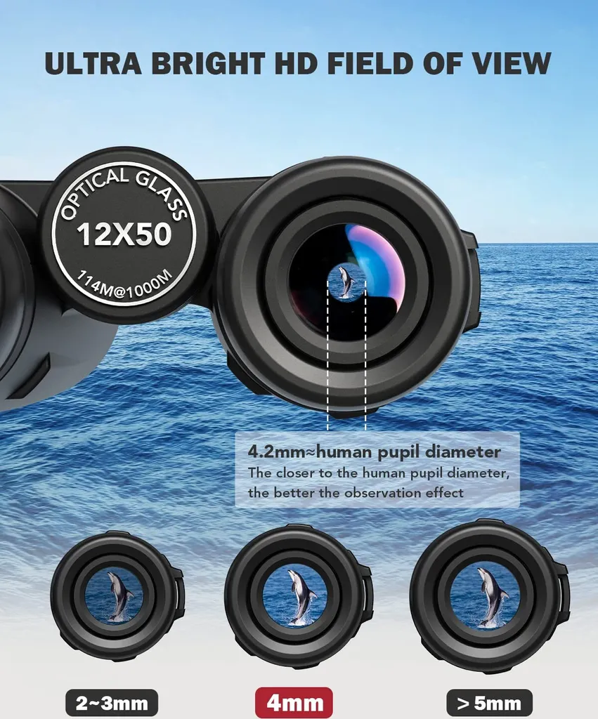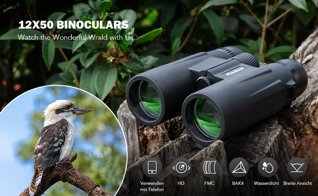 - 12×50 HD-Fernglas: 12-fachen Vergrößerung und Objektivdurchmesser von 50 mm