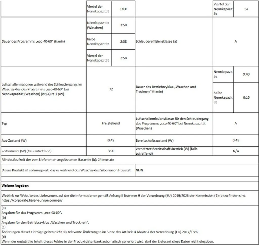 - Dauer des Wasch-Trocknen-Zyklus (links) in Stunden und Minuten: 9:40 h