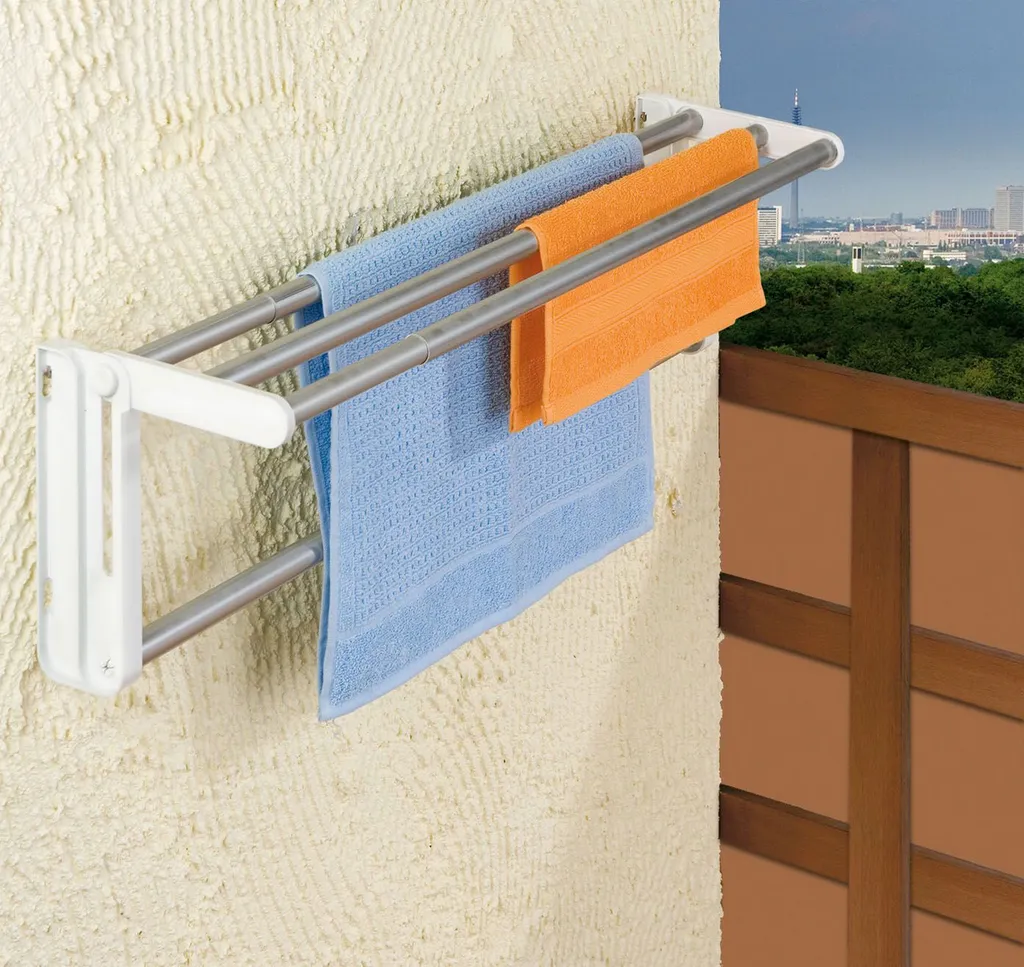 Mit dem variablen Raumspar-Trockner kann z.B. der Platz vor dem Heizkörper und damit dessen Energie optimal zum Trocknen genutzt werden. Er kann ebenso im Badezimmer oder auf dem Balkon als Trockenmöglichkeit mit Wandbefestigung eingesetzt werden.