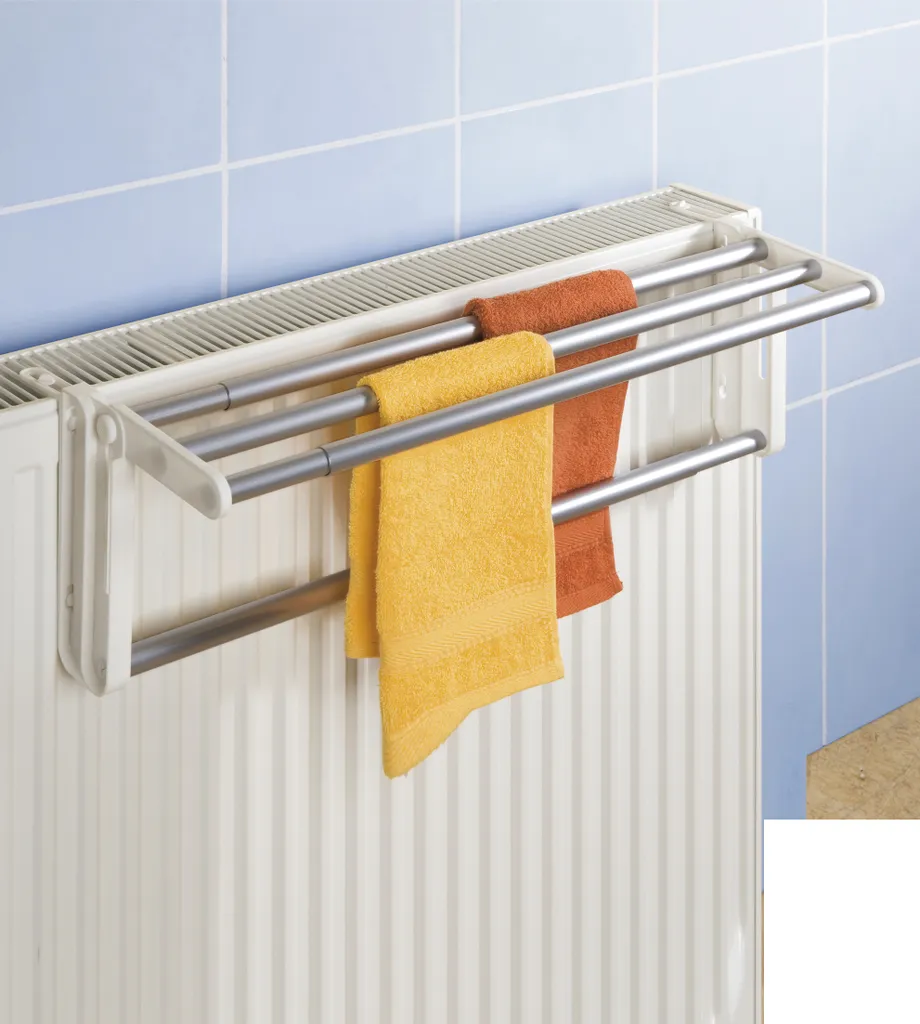 Dieser variable Wäschetrockner für Flachheizkörper bietet ausreichend Platz zum Trocknen für Handtücher, kleinere Wäschestücke etc.