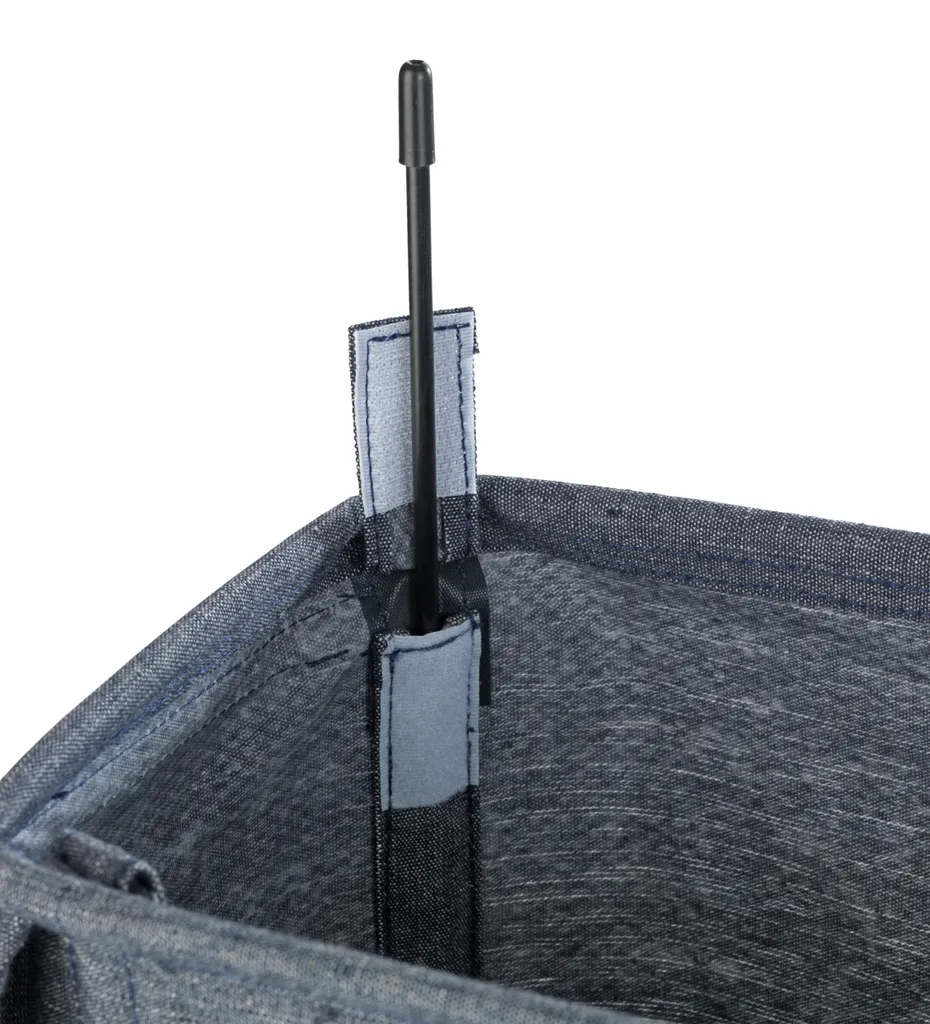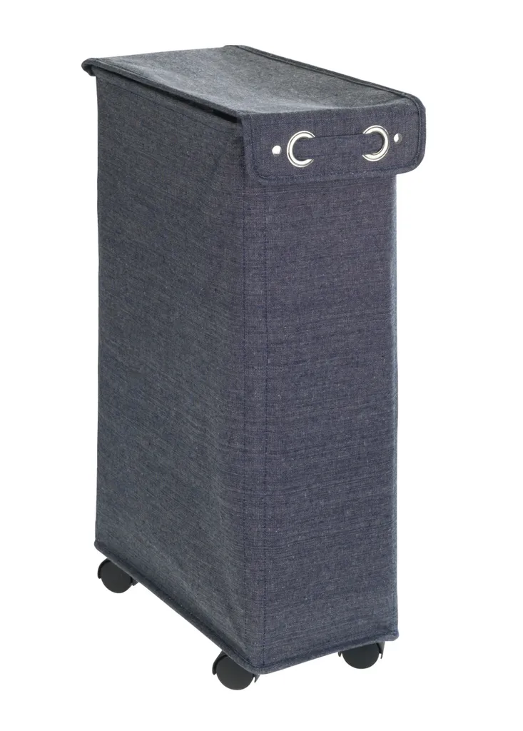 Der platzsparende, schmale Wäschesammler ist dabei aus strapazierfähigem, modernem Mischgewebe gefertigt und unkompliziert durch seine vier Rollen verschiebbar. Durch den praktischen Deckel wird die unschöne Schmutzwäsche gelungen versteckt.