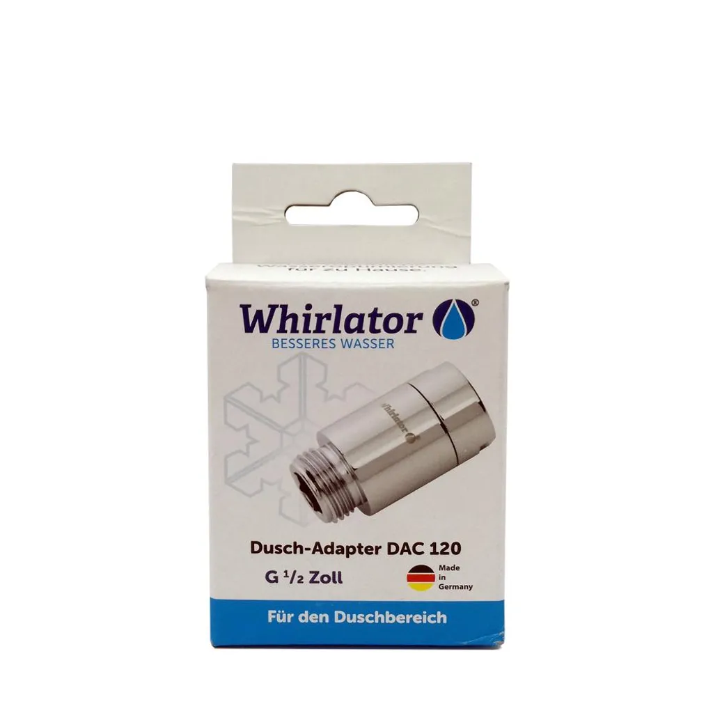 Anschluss: G ½‘‘ – G ½‘‘ I-A (Innen- und Außengewinde) für den Anschlussandie Armatur und den Duschschlauch oder alternativ kann der Whirlator Duschadapter DAC 120 an die Handbrause und den Duschschlauch. Passend auch für G ½‘‘ Wasch- und Spülmaschinenanschluss.