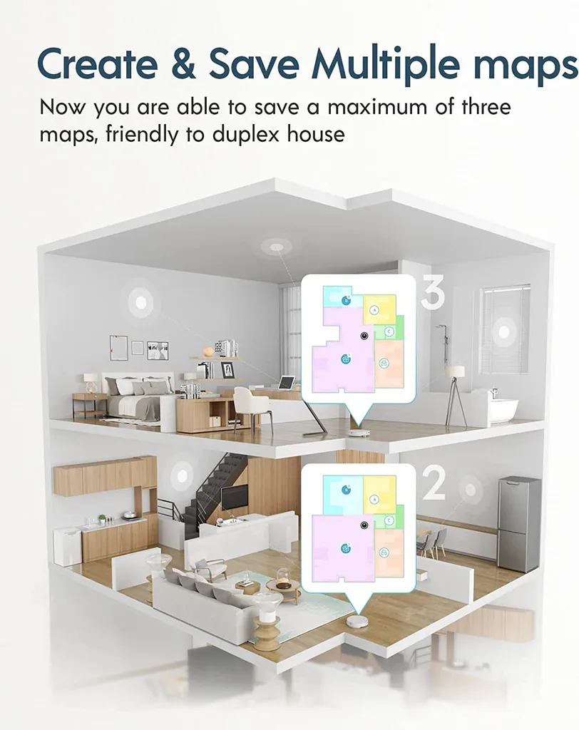 👍👍 Smarte visuelle Kartierung & Navigation: Dank der cleveren visuellen Kartierung vermisst yeedi Ihre Räumlichkeiten wie per GPS. Er erfasst Ihre Räume, um den Grundriss Ihres Zuhauses zu rekonstruieren, und erstellt einen effizienten Reinigungspfad für den gesamten Boden, damit kein Fleck übersehen wird.